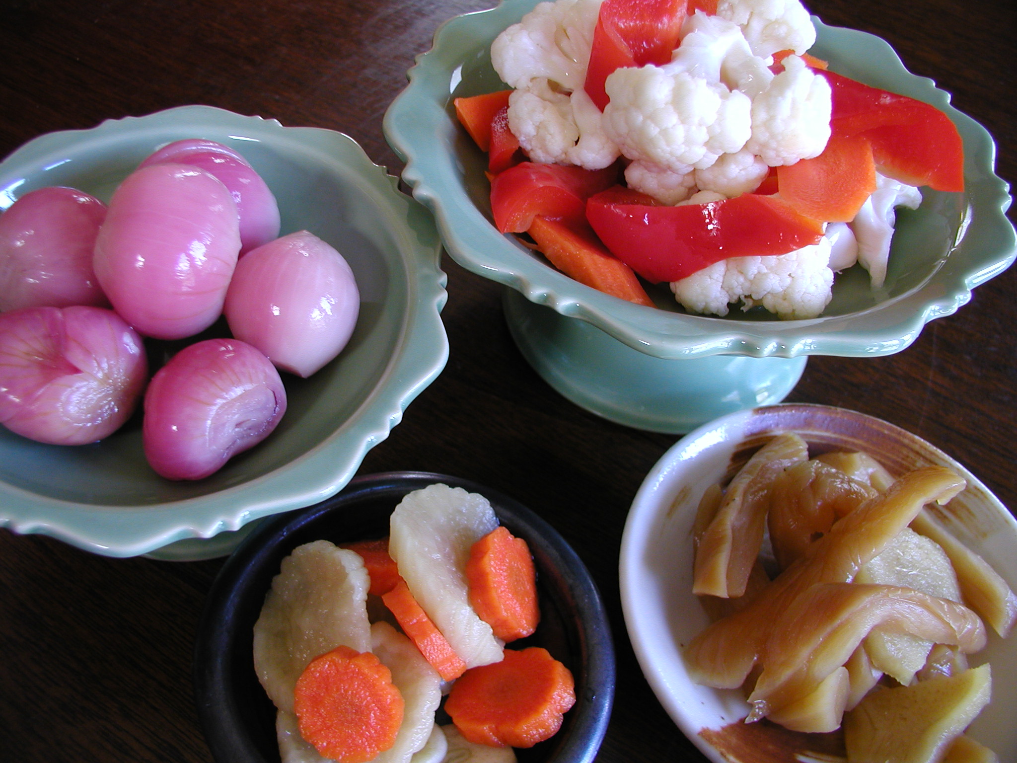 Pickles - Those cold cuts need and accompaniment like a pickled shallot or leek -- both are often sold in plastic bins in the produce section of a Viet market. Small white pickled leeks are also sold in small cans at Chinese markets. These members of the onion family are meant to help facilitate digestion of all the rich meats eaten during Tet.