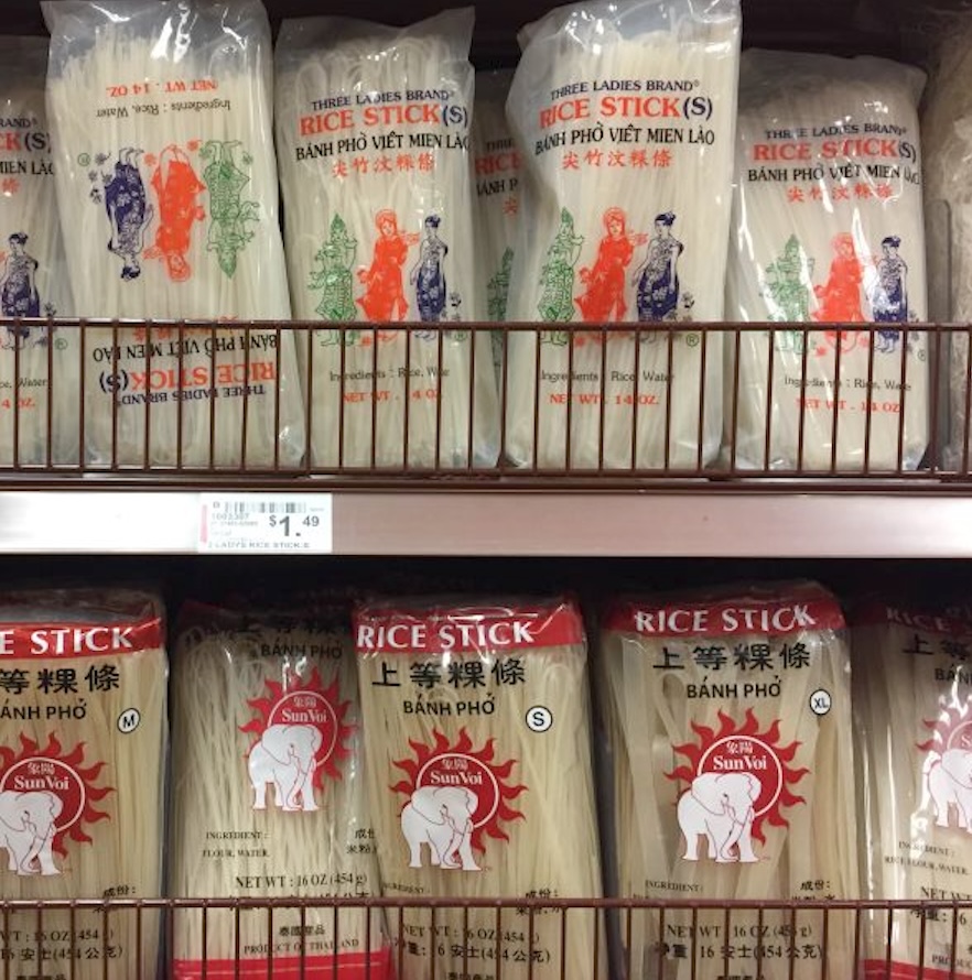 - Packaging: Look for boxes or plastic packages of rice sticks, pad Thai noodles, bánh phở, or Chantaboon (a Thai city renowned for rice noodles).