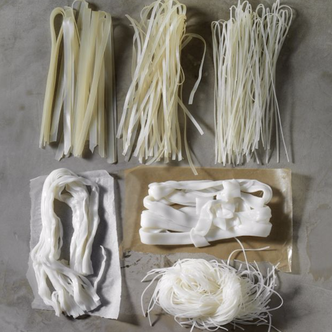 Above is the photo we made for my James Beard Award winning-book, The Pho Cookbook. You'll see in the book that the image is labeled, but without labeling and detailed explanations, it can be challenging to figure out how to find and buy pho rice noodles. What's with the dried vs. fresh noodles and the seemingly odd sizing?