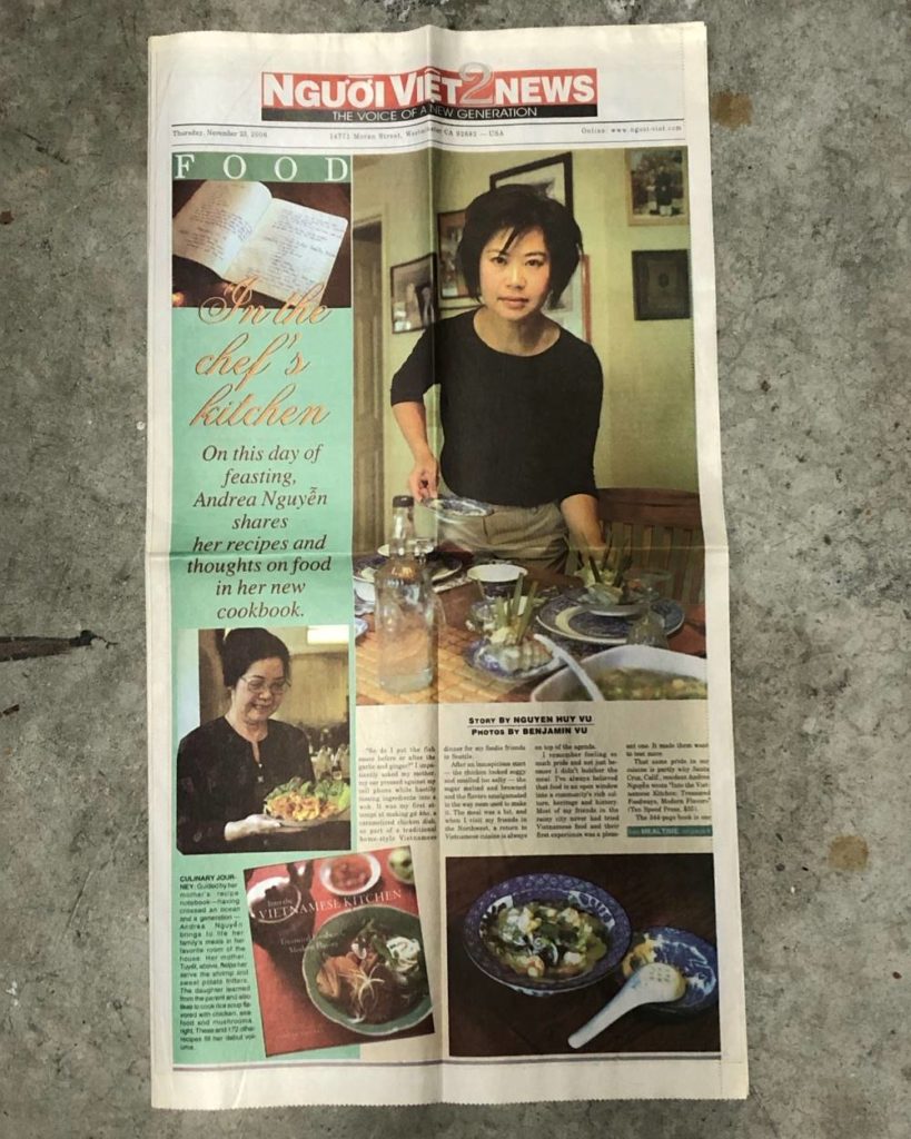 A lot of people liked it, including the New York Times, Splendid Table, Saveur magazine, and newspapers as far as Australia. Nguoi Viet, the oldest Vietnamese newspaper in America, did a lovely story too. (I look like a mannequin but my mom looks beautiful.)