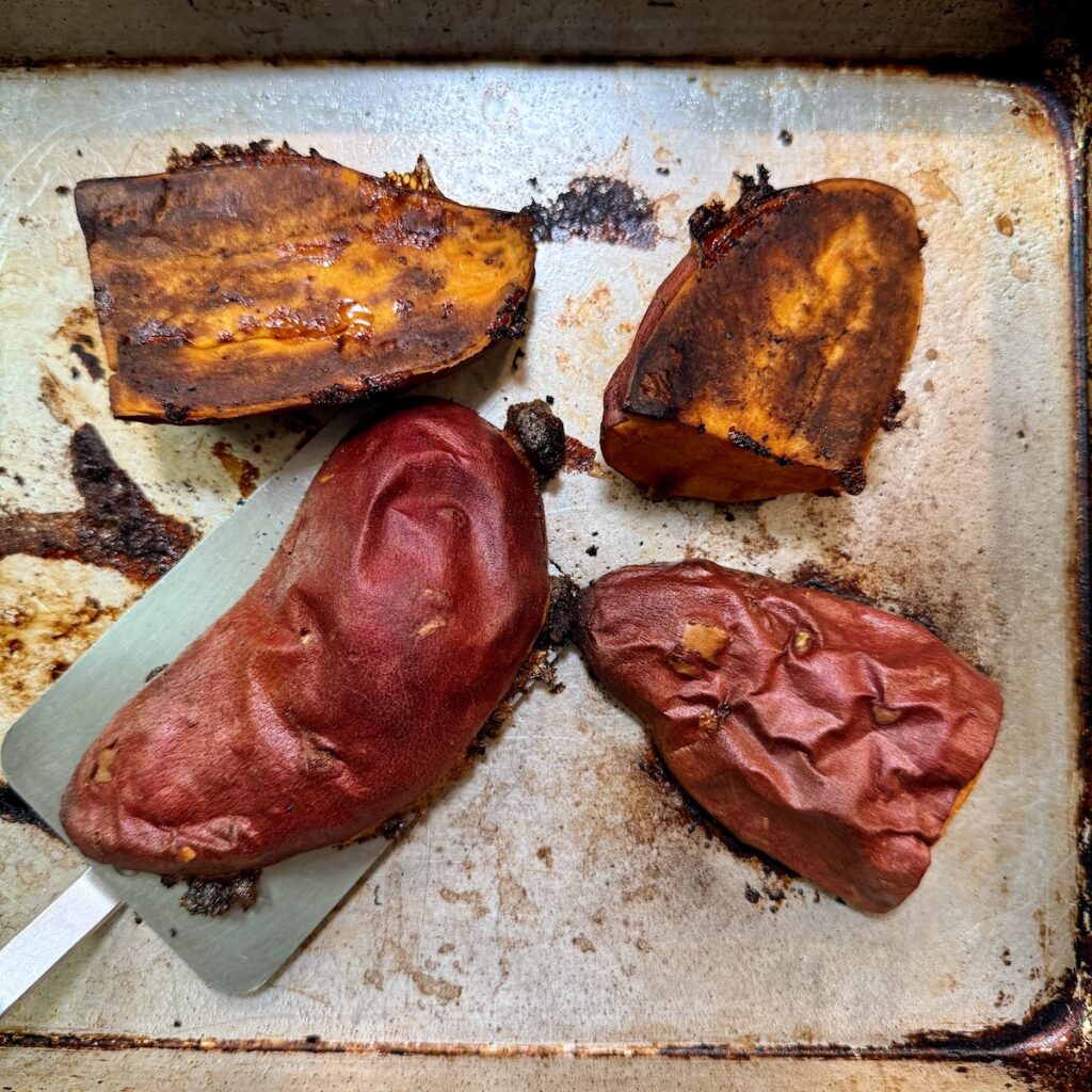 What kind of sweet potato to use? MF pointed out that sweet potatoes differ in moisture levels and sugar content so you can't do a 1:1 swap. For consistency, I use orange-flesh sweet potato (Garnet or Beauregard). If you use another kind, the texture may be off.