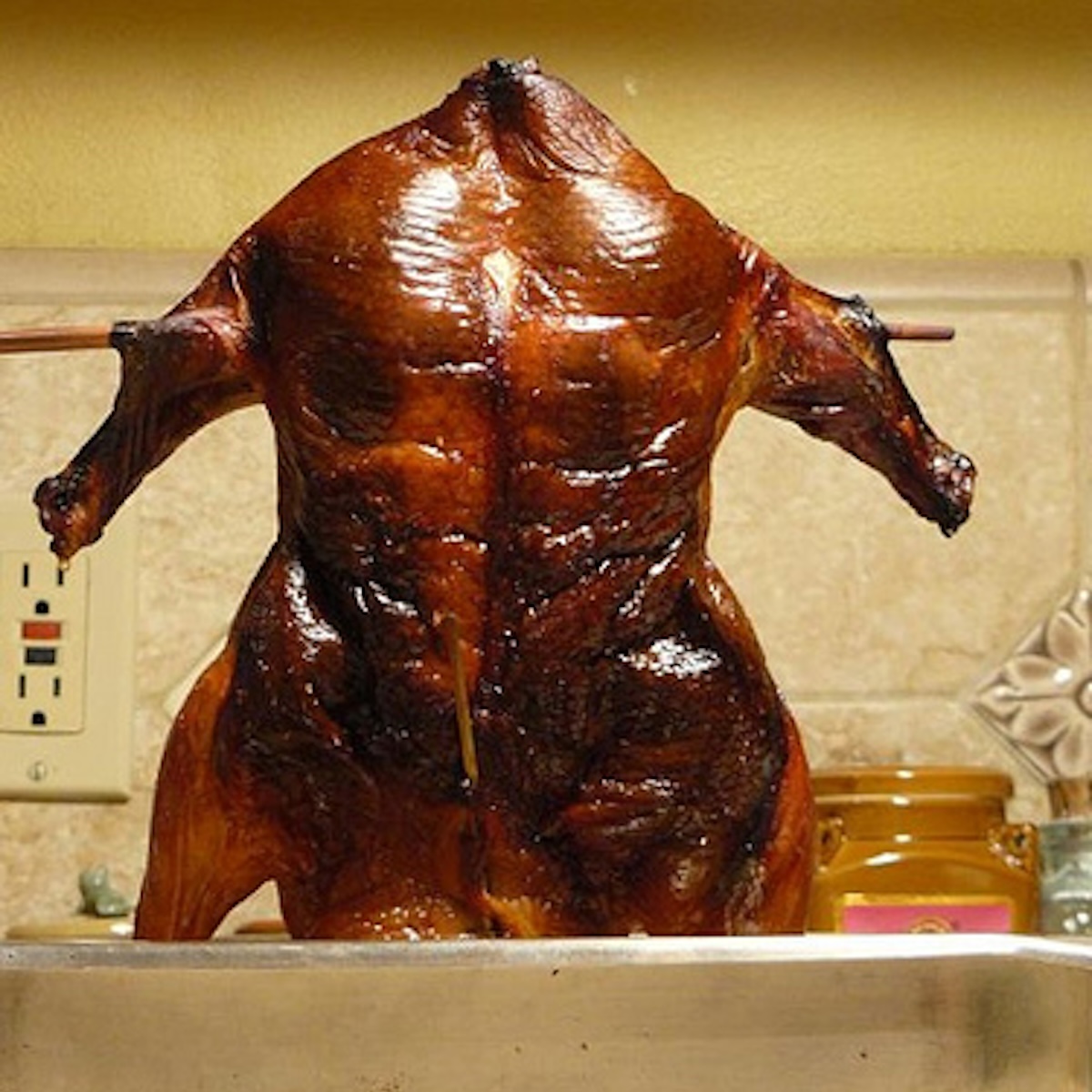 - 2 days before: Blow up the duck and give it a tan. Refrigerate to let it dry.