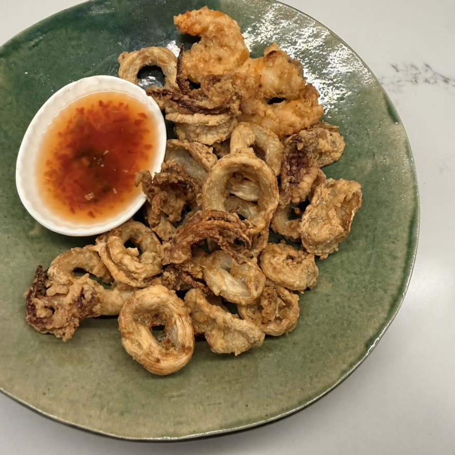 I was excited for the air fry function so I put the Ninja Combi to the test with something that I've not succeeded in cooking in an air-fryer: fried squid! The squid usually comes out wind tunnel dry. In the Ninja Combi, it was chewy crisp, even after two tries. The flavor reminded me of squid that's been left to dry in the sun in Vietnam; there was a pleasant briny chew. Alas, the texture was not up to par, my husband said. I tried the air fry mode on a couple shrimp and they were much more successful than the squid.