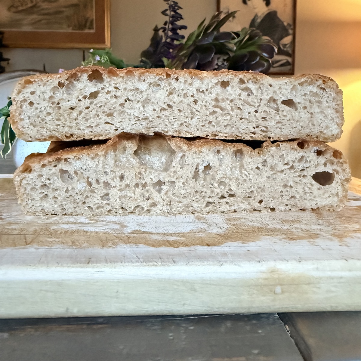 What did the focaccia's interior look like? Here's a comparison of the oven-baked one and the focaccia that resulted from the Ninja Combi Bake mode.